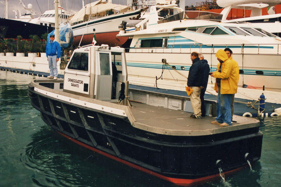 L’attenzione che mettiamo nelle costruzioni parte dal disegno preliminare in cui cerchiamo di prevedere con il nostro commitente tutto quanto gli necessita per svolgere al meglio ed in sicurezza il lavoro portuale (corrimani, scale di sicurezza, parabordi, bitte, ganci traino, etc). Lo studio preliminare è importante per la proggettazione delle strutture in vetroresina che vengono così costruite con rinforzi specifici nei punti di installazione dei particolari di allestimento (bitte, ganci di traino, parabordi, scale esterne, gru, etc.).
